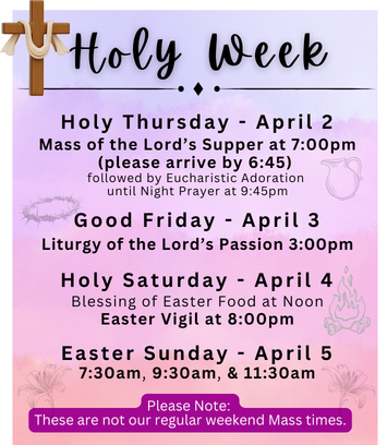 - Beware of Scam Requests - if you recently received a text or email from Fr. Tim asking for gift cards or a favor, please be aware that this did not come from Fr. Tim