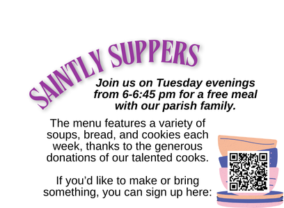 Click here to bring something to or help with Saintly (Soup) Suppers.